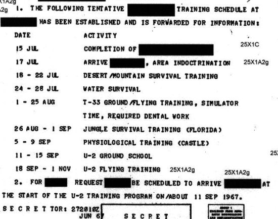 The schedule of the training program is as follows. You want compare it with the syllabus used in the early 1970s. 黃七賢和李伯偉所接受的U-2訓練時程如下表,您也可以跟1970年代受訓學員的課程比較一下。