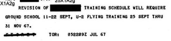 A senior U-2 pilot would normally accompany the trainees during the U-2 training. It is mostly likely that Terry Liu went to the US to provide assistance as shown in the following cable. Note that none of the names were censored. 在進行U-2訓練時,通常35中隊會派出一位資深飛行員到美國協助受訓飛行員,從下面這份文件來看,應該是由劉宅崇負責帶這兩位學弟。
