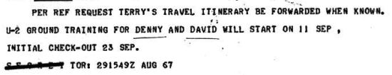 Denny and David’s U-2 flight training had been scheduled to complete at the end of November. But it was later extended until early December. “The single acft capability” mentioned in the following document was likely the consequence of the shoot-down of Article 373 on September 8. “Subsequent ferry of second acft” was not completed until Article 385 was ferried in late January 1968. Note that they had a short trip to New York and Washington at the completion, possibly for R&R. 原訂11月底完成的U-2飛行訓練,後來展延到12月初才結束。這兩位新任U-2飛行員之後還去了一趟紐約和華盛頓,應該是放結訓假吧!