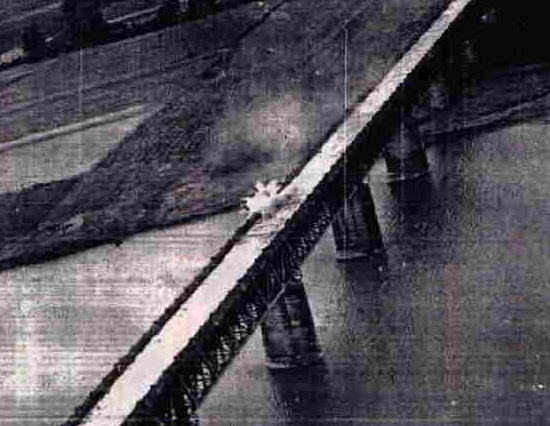 美國陸軍航空隊的B-25僅有一次以1000磅通用炸彈轟炸台灣的記錄,該次任務發生於1945年2月15日,目標是橫跨曾文溪的鐵路橋梁,不過因為當地天候不佳,部分執行任務的B-25改為轟炸曾文溪公路橋。以下即為當天1000磅炸彈擊中曾文溪公路橋的照片: