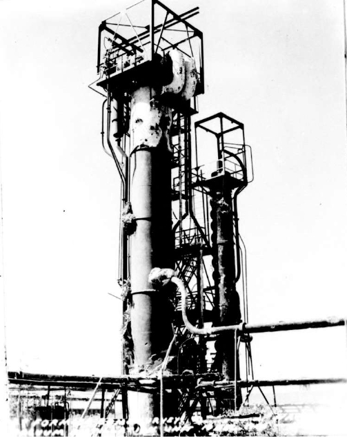 Close up of a typical vacuum distillation unit. Both were damaged by bomb fragments. (來源:国立国会図書館)