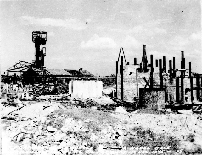 The small reprocessing plant in the foreground was completely destroyed. The building in the background is a field office. (來源:国立国会図書館)
