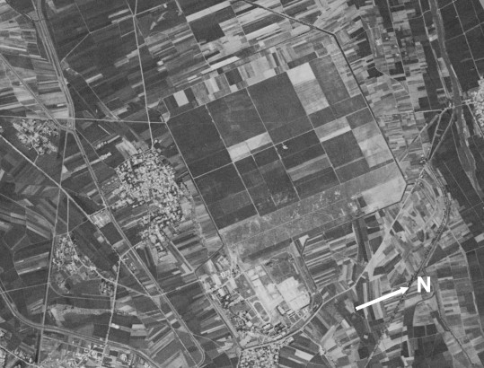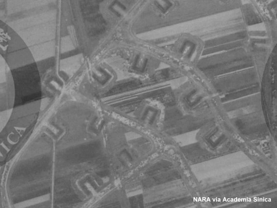 下圖是1966年拍攝的CORONA衛星照片,原本方形的飛行場大部分已變成農田,只剩下東邊的一條跑道。Below is the 1966 CORONA satellite image of the airfield. A good part of the landing area had returned to agriculture. A runway was kept on the east side.