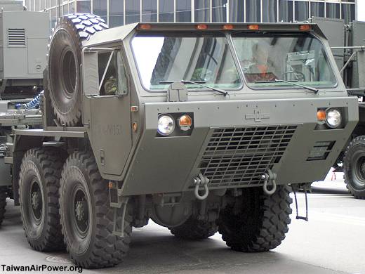 The three missile launchers are towed by three different types of truck. Oshkosh is for PAC 2, and Mercedez for Tien Kung 3. Can anybody help identify the truck for Tien Kung 1?
