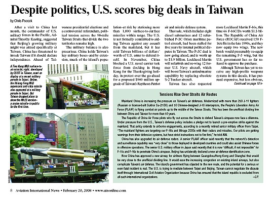 On a related topic, Chris Pocock wrote an article about Taiwan in the February 20 issue of AIN. He was kind enough to use two photos I took at last year’s October 10 military parade.
