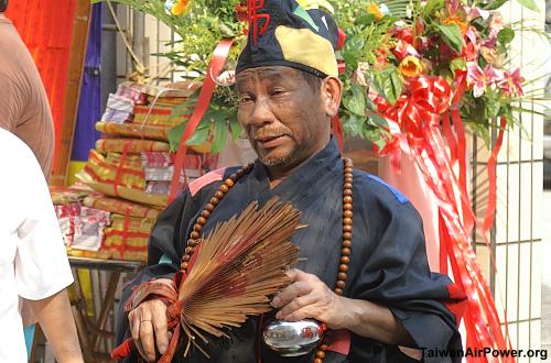 This man was portraying ji gung (濟公), an unorthodox monk.