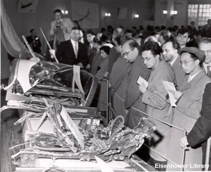 Soviet citizens viewing the wreckage of the U-2 flown by Gary Powers. (Eisenhower Libarary)