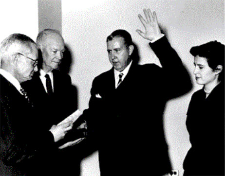 舉手宣誓的就是吉禮安,站在他右側的是艾森豪總統。