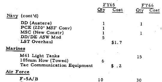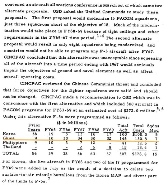 The 1964 CINCPAC History also lists the number of F-5A/B for Taiwan programmed for FY65 and FY66: