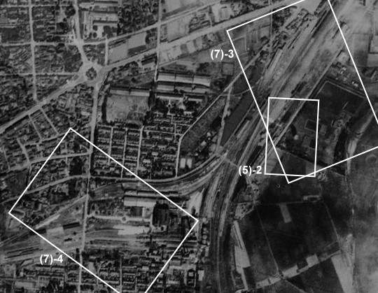上面用到的三張偵察照片其實取自同一張空照圖的局部,我把各自涵蓋的範圍標示如下: