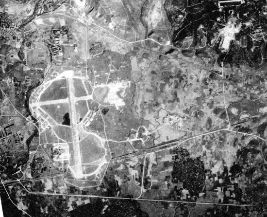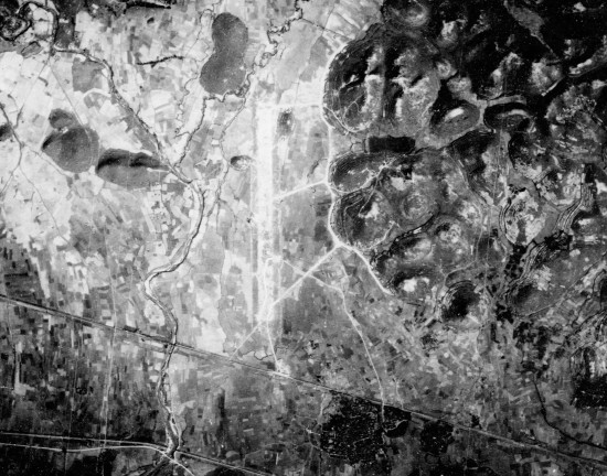 Since I did not have the photos taken by the U-2 on this mission, I wasn’t able to locate these two airfields on modern satellite image. Incidentally, I discovered aerial reconnaissance photos of them taken by the US Navy during WWII. The next photo shows Huang-Pu Airfield in 1945: