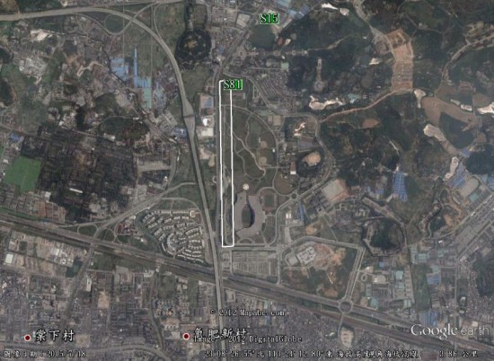 不過由於廣州在近十多年來發展迅速,地貌變化劇烈,我花了一番工夫才找到黃埔機場的確切位置(白線繪出的輪廓):