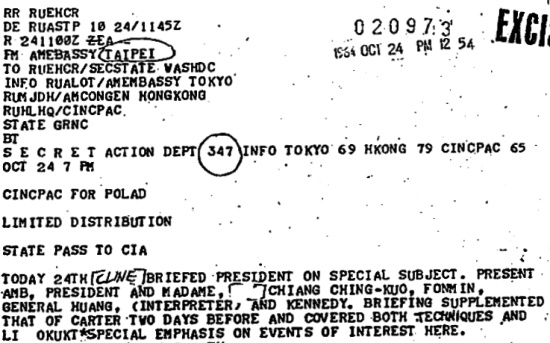 我在上文中特別把沈昌煥和蔣經國的英文名字用粗體字標出來,因為這表示他們兩人都參加了克萊恩在台灣的兩次簡報。既然都在現場,又何需胡炘轉告會談的內容?文中出現的Ambassador Wright就是當時的美國駐中華民國大使賴特(Jerauld Wright),而Mr. Nelson則是接任中情局台北站站長的納爾遜(William E. Nelson)。這份名為「Report of Meeting Between Chinese Nationalist Officials and Dr. Ray S. Cline」的全文可在國務院的網站上看到。