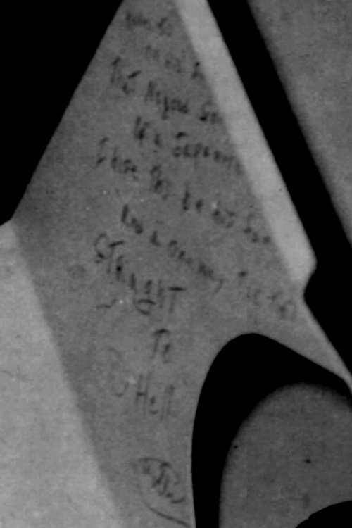 The last three words are “Straight To Hell” but I was unable to read the rest: