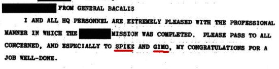這次任務完成後,中情局Office of Special Activities的主管Bacalis准將立刻致電恭賀莊人亮和隊長楊世駒。