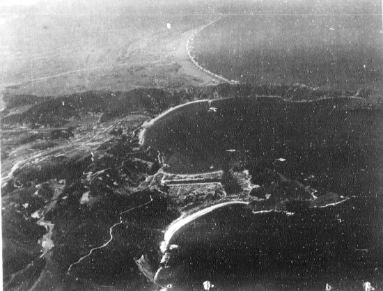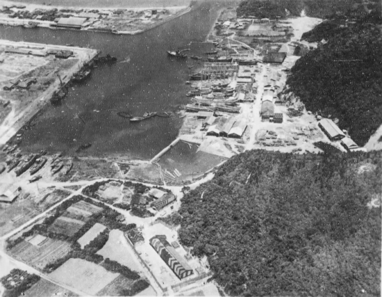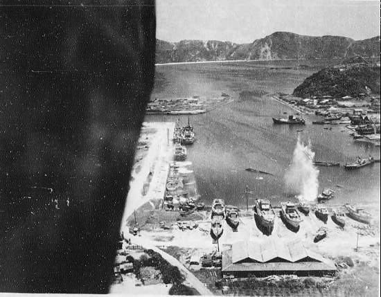 A PB4Y-1 patrol plane of US Navy VPB-104, loaded with 2 500-lb, 4 250-lb, and 5 100-lb bombs, took off from Clark Field, Luzon, on the morning of April 22, 1945, for an offensive search and reconnaissance mission around Yaeyama Shoto and Formosa. The plane first strafed 10 luggers on Iriomote Island with unknown results. Then, further on patrol, the pilot sighted 12 Sugar Dogs (the designation assigned to Japanese small craft between 150 and 300 gross tons with aft deckhouse and engine) and dozens of luggers in the harbor of Suo (currently Suao), Formosa. The first photo below is an high-altitude view of the area taken during this mission.
