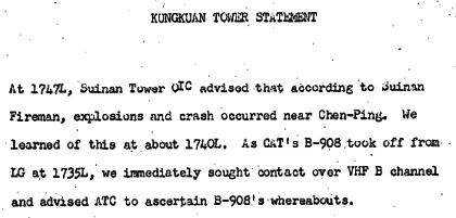 管先生,您好:我只是無意發中發現這批檔案,而政府又沒有公開相關的細節(也許是我自己沒找到),所以藉此讓大家可以了解更多一些。您的研究還是更深入,比如您留言所說,這班機是固定的公務機,而當天只載了哪些人,這些在CIA的公開檔案都沒有提到。謝謝您的補充!